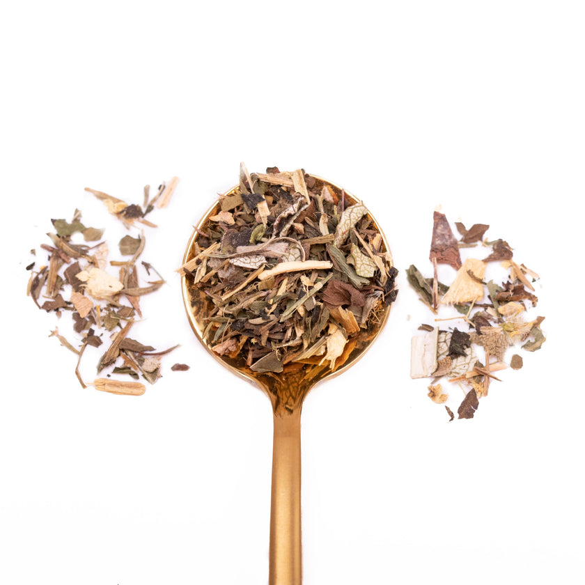 100% certified organic ingredients: Ginger, Peppermint, Nettle leaf, Licorice root, Goldenrod, Fenugreek, Thyme, Yerba Santa, Elderflowers, Sage